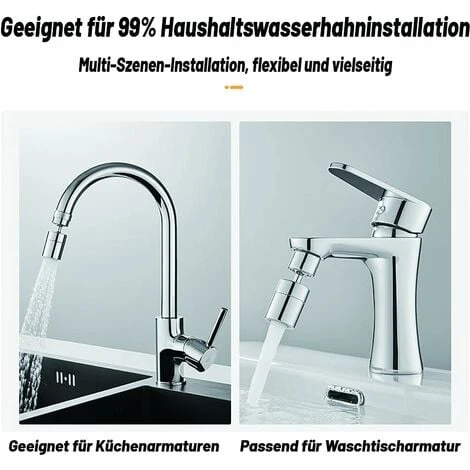 ????【Rotazione di 720°】Rotazione a doppia testa, ampio angolo, può essere ruotata liberamente, può essere piegata e piegata a piacimento, fornendo più possibilità e usi.????【Water Spapen】Aumenta la pressione, il flusso d’acqua è molto liscio, vengono generate molte bolle ed è più facile da pulire. Risparmia il 30% -70% di acqua (rispetto agli aeratori standard).???? 【Materiale Premium】 L’aeratore del rubinetto è realizzato in ottone massiccio di alta qualità, con ABS di alta qualità, che è durevole. La finitura cromata lucida lucida previene la ruggine e l’appannamento quotidiani per una facile pulizia quotidiana.???? 【Due modalità】 È possibile impostare due modalità di commutazione tramite il pulsante e passare facilmente tra le due funzioni tramite il pulsante. È un ugello morbido e confortevole che non schizza e puoi regolare la quantità di acqua a tuo piacimento.???? 【Facile da installare e pulire】 Adatto per il 99% dei rubinetti. Comodo e flessibile, risparmia tempo. Puoi installare tu stesso il rubinetto flessibile della cucina. Comodo e risparmio di tempo. Ideale per sale da pranzo, lavanderie e cortili.