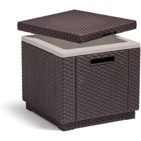 Il cubetto di ghiaccio formoso e alla moda e’ un tuttofare bello e stabile. La borsa frigo ha un aspetto realistico e aperto in rattan, e’ versatile e sara’ il punto forte della tua prossima festa in giardino, partita di calcio o barbecue., Questa borsa frigo e’ robusta e formosa. Puo’ essere utilizzato anche come sgabello o tavolino, se necessario. La plastica di alta qualita’ e’ impermeabile, quindi mantiene il contenuto sempre asciutto e richiede poca manutenzione. La struttura a doppia parete e la borsa fredda inclusa mantengono fresche le bevande e gli snack. Se lo si desidera, e’ anche possibile riempire il cubetto di ghiaccio con cubetti di ghiaccio. Questa piccola meraviglia rinfrescante e’ ideale anche per aree esterne piu’ piccole come un balcone. Anche lo sgabello e’ molto ben fatto e puo’ essere impostato rapidamente senza troppi sforzi. Dimensioni (LxPxA): 42 x 42 x 41 cm.
