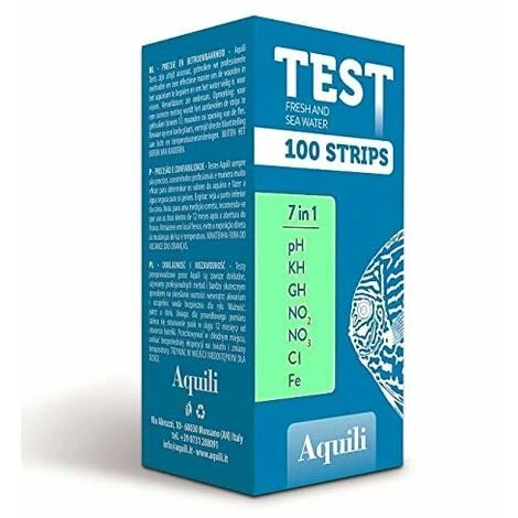Determinazione rapida e semplice dei 7 più importanti valori dell’acqua in un solo minuto: ph, gh (general hardness), kh (carbonate), no2, no3, fe, cl. Per l’acquario ed il laghetto 100 strisce reattive 700 test singoli i valori di nitrito (no2) e nitrato (no3) indicano se i processi di depurazione biologica dell’acqua sono funzionanti. Il ph indica la acidità o basicità dell’acqua il kh è importante per la stabilizzazione del valore ph. Il gh indica se ci sono troppi o troppo pochi minerali nell’acqua. Il valore fe indica se l’acqua contiene abbastanza ferro per le piante ed i microorganismi. Il valore cl indica la quantità di cloro disciolta in acqua.