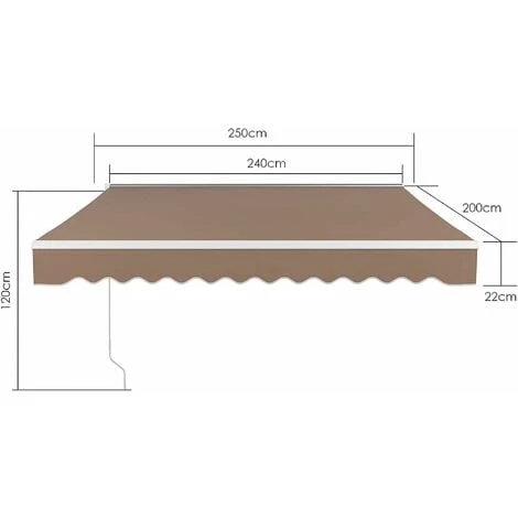 ISTRUZIONI PER L’INSTALLAZIONE: Prima di installare la tenda da sole, deve essere montata. Fornire viti per la tenda da sole, che sono fissate sul muro di cemento armato e sul muro di mattoni. (La parete di legno non include Lieferumfang e può essere perpendicolare al muro. L’installazione richiede punte aggiuntive , comprese punte, nastro e chiavi inglese(chiavi inglese M10 e M12).