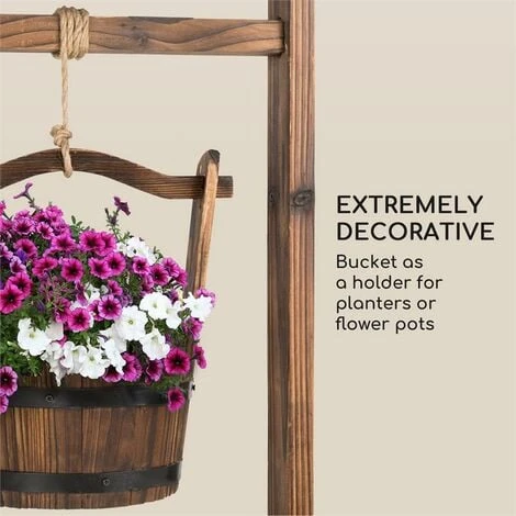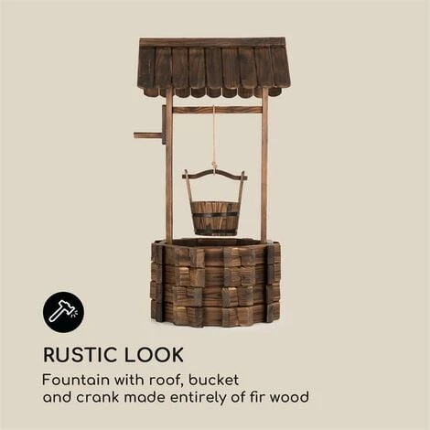 Completamente realizzata in abete, la fontana alta 118 cm risveglia ricordi di tempi passati e porta un’accogliente atmosfera rustica direttamente a casa vostra. Incredibilmente magica: il secchio sull’argano può essere utilizzato come supporto per vasi di piante o fiori, creando così un collegamento tra giardino fiorito ed elemento decorativo.
