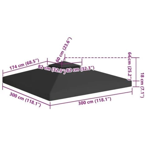 Il tetto di ricambio è realizzato in resistente tessuto in poliestere con rivestimento in PVC, che lo rende resistente all’acqua. Il tetto del gazebo vi proteggerà dal sole, dalla pioggia e da altre condizioni meteorologiche avverse. La copertura ha angoli rinforzati per una maggiore durata.