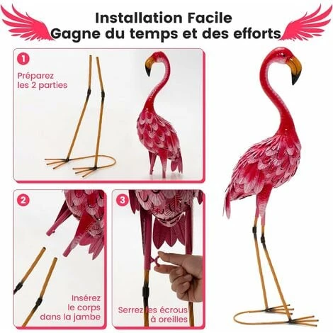 Montaggio Facile e Veloce: È sufficiente collegare le zampe e il corpo con i dadi ad alette per ottenere una statua di fenicottero completa. E ogni statua di fenicottero è dotata di piedini a forma di U che si mantengono in piedi e in modo stabile.