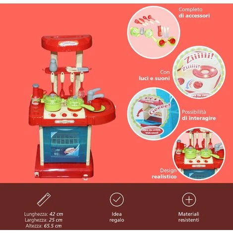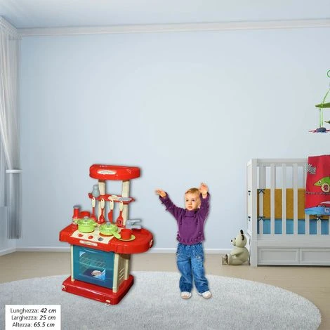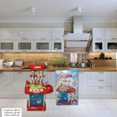 Molto solida e compatta questa cucina grazie alle sue dimensioni di appena 42 x 25 x 65,5 cm può essere posizionata in qualsiasi parte della casa come: in cameretta in soggiorno o in cucina per divertirsi con i propri bambini.