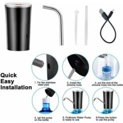 Realizzato in materiale ABS e silicone di alta qualità, ecologico, resistente e sicuro da usare.< br>Con una ricarica USB porta, può essere caricato dal sistema di cavi USB del tuo telefono cellulare Andrews, conveniente per te. Ha un tubo smontato per una facile pulizia. Dimensioni compatte, leggere e portatili che ti permettono di bere acqua molto facilmente. Un pulsante, facile da usare. Premi il pulsante per ottenere l’acqua, premi di nuovo, si spegnerà.