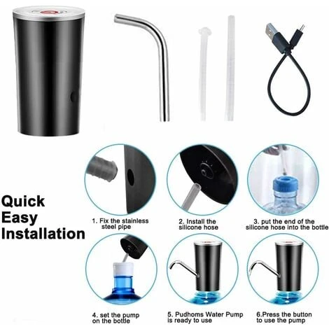 Elevata compatibilità: il giusto dispositivo di pompaggio elettrico per pura acqua potabile in bottiglia, adatto per una varietà di modelli di fusti da galloni senza leva. Compatibile con bottiglie di diverse capacità: 4,5 L, 5 L, 7,5 L, 10 L, 11,3 L, 15 L, 18,9 L. RemaASDue: questa pompa per acqua potabile è adatta per fusti da un gallone con un collo da 2,16 pollici (5,5 cm). Si prega di confermare i barili di galloni delle dimensioni del collo prima dell’acquisto., Batteria ricaricabile USB: batteria ricaricabile integrata da 1200 mAh. Può essere utilizzato per 30-40 giorni o circa 4-6 bottiglie d’acqua da 5 galloni quando è completamente carico. Non è necessario ricaricare ogni giorno.