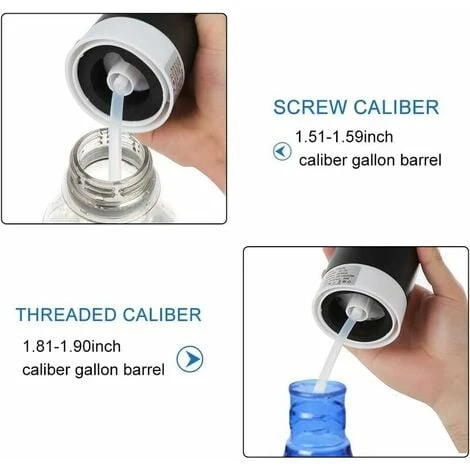 Alta compatibilità: la pompa per acqua potabile è adatta per fusti da galloni con collo da 5,5 cm.È dotata di due adattatori ed è compatibile con bottiglie d’acqua di diverse capacità: 2-5Gallon, gold 4.5L, 5L, 7.5L, 10 L, 11,3 L, 15 L, 18,9 L. Nessuna preoccupazione