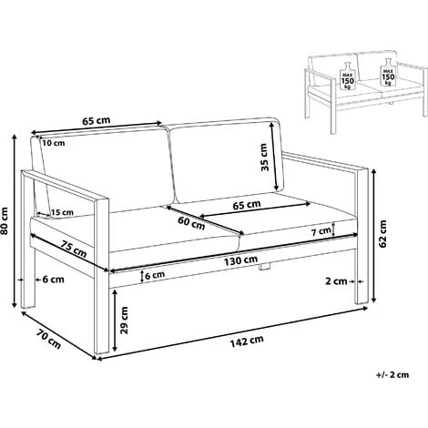 Dimensioni seduta: 130×60 cm
