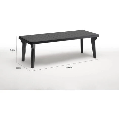 CARATTERISTICHE TECNICHE – Interamente composto in resistente polipropilene, permette di essere posizionato all’aria aperta, resistendo facilmente ai raggi solari e alla pioggia, è impermeabile – Interamente lavabile, facile da pulire – Il montaggio è semplice e veloce – Finitura matt – DIMENSIONI PRODOTTO IN CM – Chiuso: 160x90h74, Aperto: 220x90h74, Allunga: 60