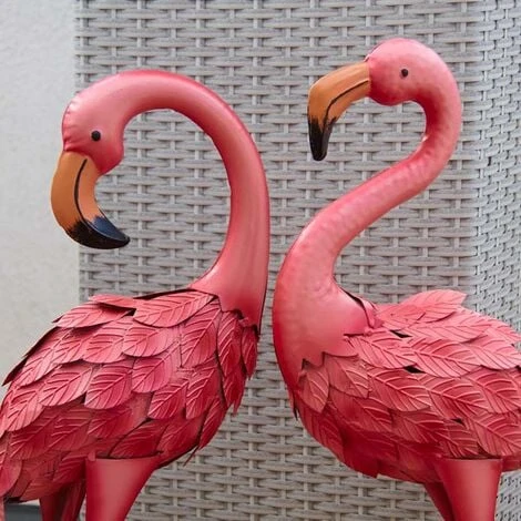 Fenicottero rosa in metallo laccato opaco (Set di 2)