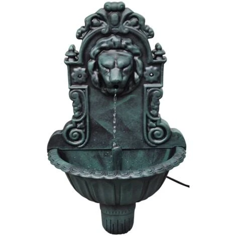 Questa fontana a muro in stile vintage ha un disegno decorativo a testa di leone. La fontana può essere facilmente e rapidamente montata su un muro. Questa fontana a muro è dotata di una pompa dell’acqua a funzionamento regolare, mentre l’acqua viene continuamente ricircolata.