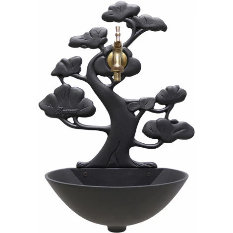 Fontana a muro modello Azalea, in fusione d’alluminio verniciata grigio ghisa completa di rubinetto in ottone brunito.