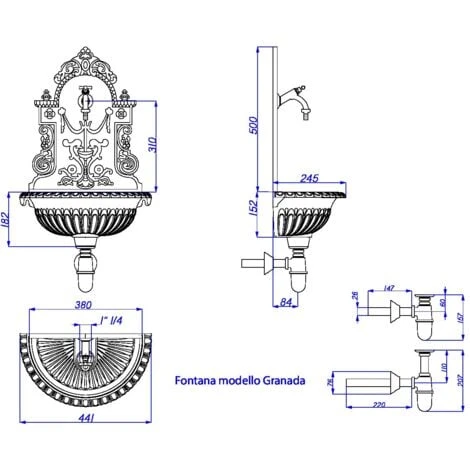 – La fontana è completa di rubinetto e sifone in ottone brunito