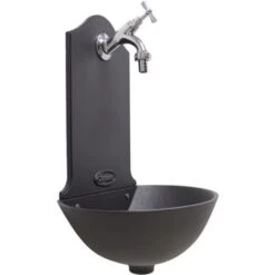Fontana a muro modello Malaga, in fusione d’allumino verniciata grigio ghisa completa di rubinetto in ottone cromato.