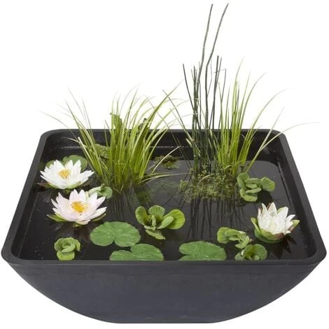 Questo mini laghetto può essere installato quasi ovunque in un giardino o su un patio, anche in ambienti chiusi o su un balcone. La pompa per la fontana ed il contenitore per le piante sono inclusi nella consegna.