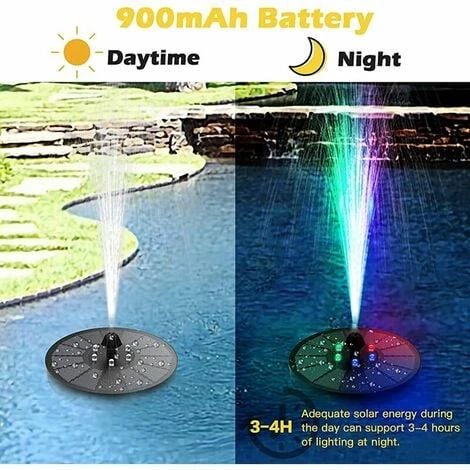 Batteria ecologica La pompa solare per laghetto è dotata di una batteria integrata ai polimeri di litio ad alte prestazioni. Sfrutta appieno la fonte di energia solare e può spruzzare acqua durante il giorno durante la ricarica. Può funzionare per 3-4 ore dopo il tramonto, viene utilizzato dopo che la batteria è completamente carica, il che è molto rispettoso dell’ambiente, l’illuminazione è molto bella.