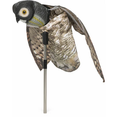 Niente più frutta e verdura nel tuo giardino rovinata dai volatili, grazie a questo grande gufo allontana volatili: li terrà alla larga! Con la sua maestosa apertura alare, è del tutto assomigliante ad un vero gufo! Con bastone per infilarlo nel terreno, il grande gufo allontana volatili è realizzato in plastica, poliestere e metallo. Dim. 80 x 60 x 70 cm.