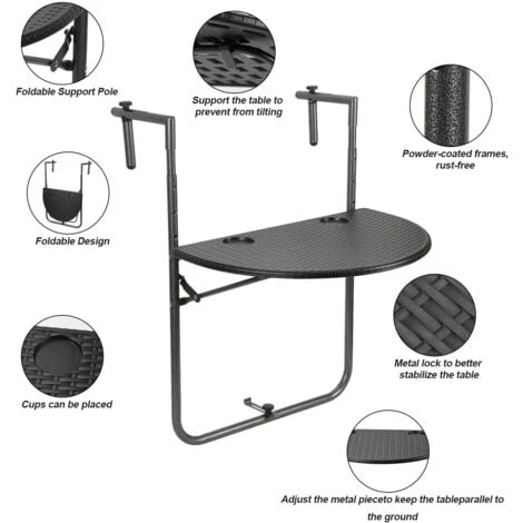Il tavolo sospeso da balcone è adatto per balconi, terrazze, giardini, interni ed esterni con uno spessore della ringhiera di 6-15 cm