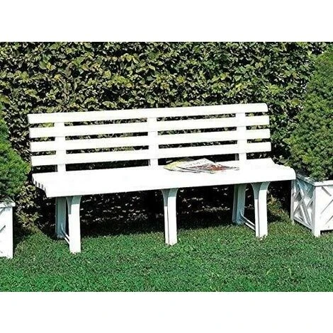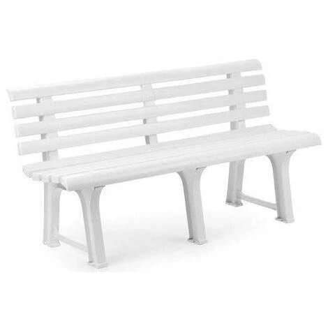 Panchina da giardino in resina color bianco. riciclabile al 100%. resiste ad agenti atmosferici. muffa. smog e polvere.