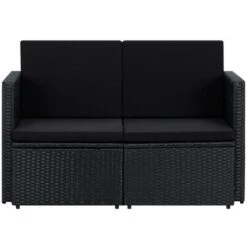 Divano Da Giardino A 2 Posti Con Cuscini Nero In Polyrattan VidaXL