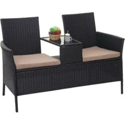 Nova Divano Per Esterni A 2 Sedute Con Portavivande In Polyrattan Vari Colori Colore : Nero E Avorio
