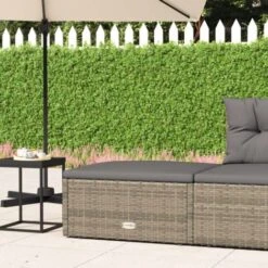 Poggiapiedi Da Giardino Con Cuscino In Polyrattan Grigio VidaXL