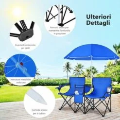 HU-139 Sedia UMBRELLA Pieghevole Da Campeggio Con Sacca Camping Sedia Spiaggia Blu 80cm