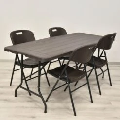 TAVOLO IN METALLO E PVC PIEGHEVOLE 180X75cm – PIC-NIC CAMPEGGIO FIERE SAGRE – STAMPO EFFETTO LEGNO