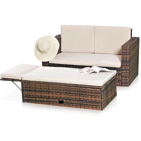- 1 x set di mobili composto da divano a due posti e pouf, colore: Marrone / Beige.