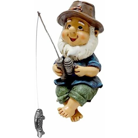 Titolo: Nano da giardino in resina con gnomo pescatore – Decorazione per prato, cortile, balcone, terrazza, casa e all’aperto