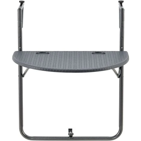 Il tavolino appeso sulla ringiera è una soluzione salvaspazio sul balcone. Quando serve una superfice di appoggio possiamo aprire il piano e ripiegarlo dopo il suo utilizzo.