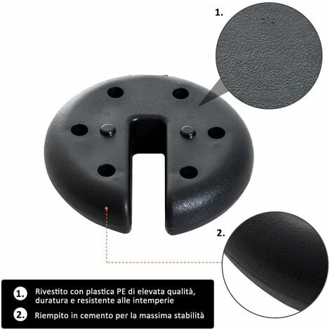 Questa base per gazebo Outsunny con set da 4 pezzi evita che il tuo gazebo venga portato via dal vento. Ideale per gazebo con tubi quadrati di misura da 20×20 mm a 30×30 mm. Realizzato in plastica PE e cemento, è molto resistente e durevole. Dal design compatto, facile da trasportare riporre.