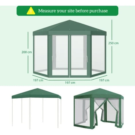 Avete bisogno di un luogo ombreggiato dove potete ripararvi dal sole o dalla pioggia all’aperto? Il nostro gazebo esagonale moderno è la scelta perfetta per qualsiasi attività, festa, riunione in giardino o in campeggio. Fornisce un’ombra fresca e protegge efficacemente dagli insetti grazie alle 6 zanzariere. Realizzato in tessuto di poliestere. Robusta struttura in metallo con vernice a polvere. Lavorazione di prima classe, con protezione da deformazione, corrosione e ruggine. Facile da montare grazie alle istruzioni incluse.