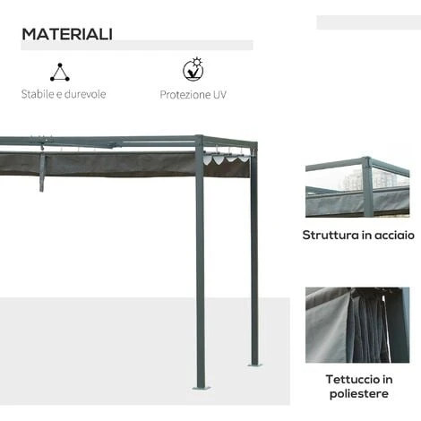 Crea uno spazio romantico e ombreggiato nel tuo giardino con questo gazebo Outsunny. Perfetto per decorare i tuoi spazi aperti in occasione di eventi, barbecue o feste, è dotato di un telo scorrevole in poliestere, per offrire ai tuoi ospiti uno spazio fresco e ombreggiato nelle giornate di sole. Grazie alla robusta struttura in acciaio verniciato a polvere, questo pergolato è robusto e resistente, destinato a durare per molto tempo.