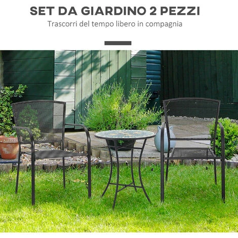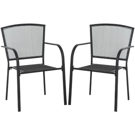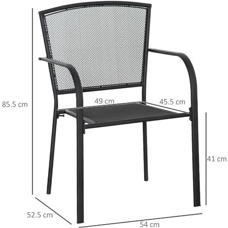 Per il tuo arredamento da giardino scegli questo set di 2 sedie da esterno Outsunny. Hanno un design semplice ma allo stesso tempo elegante, con una robusta struttura in metallo resistente all’uso in spazi esterni. Lo schienale e la seduta in rete metallica assicurano massima traspirabilità e i braccioli ti permettono di rilassarti in ogni momento. Rinnova il tuo giardino, cortile, patio e ogni spazio all’aperto con queste sedie e goditi le belle giornate!