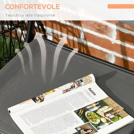Aggiungi della bellezza ai tuoi spazi esterni con questo set da giardino Outsunny da tre pezzi. Il set è composto da un tavolo rotondo con piano in vetro temperato e da due sedie da giardino, entrambe con seduta e schienale in tessuto a rete traspirante per restare al fresco all’aperto. Il set tavolo e sedie, realizzato con un telaio in acciaio verniciato a polvere, si rivela solido e robusto. Le sedie moderne, leggere e pieghevoli, possono essere facilmente trasportate in giro.