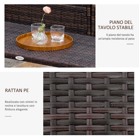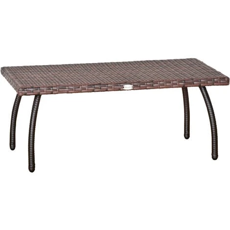 Questo tavolino basso da esterno in rattan Outsunny è l’accessorio indispensabile per sfruttare al massimo le tue giornate in giardino o in terrazzo. Discreto ma chic, ha un telaio in metallo ed è rivestito in rattan sintetico: un materiale impermeabile e resistente ai raggi UV, perfetto per gli ambienti esterni.