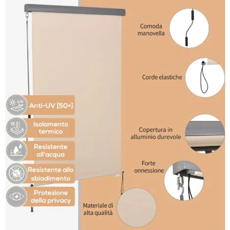 Blocca i raggi del sole e riduci il calore all’interno della tua casa con questa tenda avvolgibile Outsunny. La tenda in poliestere grigio è regolabile grazie a un sistema di avvolgimento con manovella, e ti garantisce massima privacy e protezione dai raggi UV. Facile da installare, puoi montarla sia alla parete che al soffitto seguendo passo per passo le indicazioni riportate nel manuale di istruzioni incluso nella confezione.