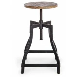 Sgabello Di Design In Legno Con Seduta Rivestita In Pelle Di Cavallino, Altezza 45 Cm, Standard