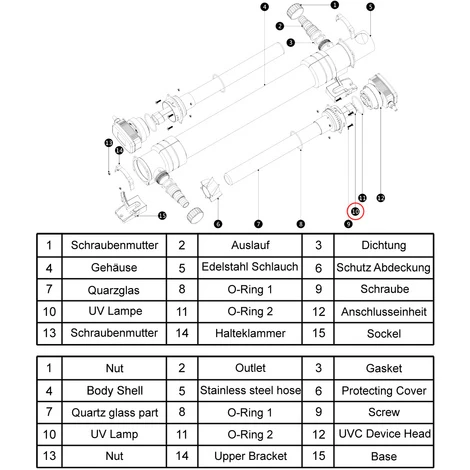 Il tubo UV dev’essere sostituito dopo 6.000 ore di funzionamento, poiché allora l’intensità diminuisce notevolmente: la cosa migliore da fare è sostituirlo ad ogni primavera.