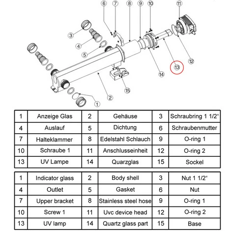 Il tubo UV dev’essere sostituito dopo 6.000 ore di funzionamento, poiché allora l’intensità diminuisce notevolmente: la cosa migliore da fare è sostituirlo ad ogni primavera.
