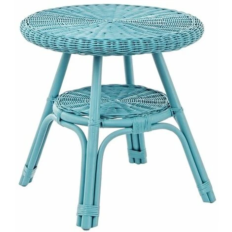La struttura in rattan e intreccio in midollino è verniciata in melaminico di colore verde, blu e bianco.