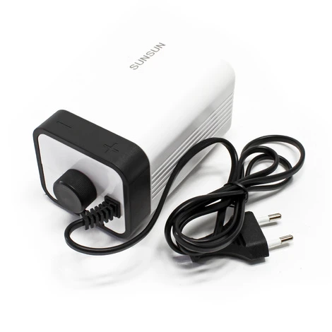 La silenziosa pompa per acquari e stagni SunSun CT-201 ha una potenza di 1,5 litri al minuto con un consumo di appena 4 watt. La pompa è regolabile in continuo tramite una manopola.