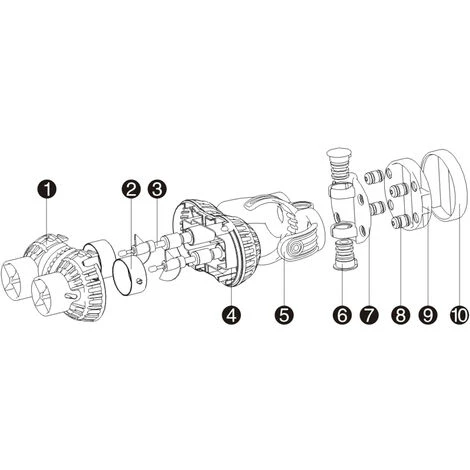 La testa della pompa doppia SunSun JVP-232 è dotata di due ugelli di uscita e può essere diretta verso l’alto, verso il basso, verso destra e verso sinistra, in modo da regolare a piacere la direzione del flusso.