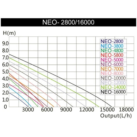 Se si paragona il consumo d’energia della serie NEO a quello di altre pompe per laghetti, si può notare un notevole risparmio energetico.