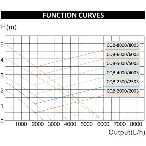 Se si paragona il consumo d’energia della serie CQB a quello di altre pompe per laghetto, si può costatare che la tendenza verso il risparmio energetico è stata seguita ed ha dato buoni risultati. Le pompe per laghettoi sono apparecchi che funzionano di continuo, dunque ogni watt risparmiato ha la sua importanza e influenza positivamente il vostro budget.