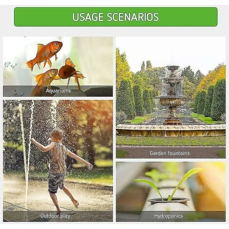 < p>1. Pompa dell’acqua sommergibile – Un interruttore sul lato facilita l’impostazione della portata. Vieni con ugelli di uscita dell’acqua che consentono diversi effetti di flusso d’acqua.