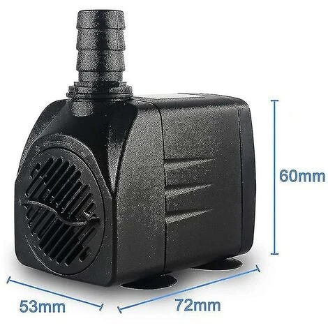 25W: dimensioni 85 * 60 * 70 mm, Portata 2000 L/h, prevalenza 2 m