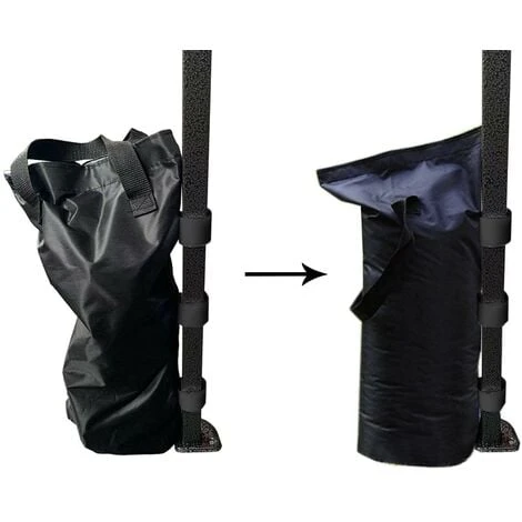 • MONTAGGIO: Riempi i sacchetti con il materiale riempitivo e fissali alla gambe del tendone con le strisce di velcro