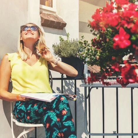 Goditi una piacevolecolazione sul balcone con questo pratico tavolino sospeso. Il tavolo salvaspazio si appende a diversi tipi diringhiere e può anche essere regolato in altezza, per adattarsi a ogniesigenza. Con il tavolino avrai finalmente spazio per poggiare tazze, giornali, posacenere, decorazionioppure piante. Il tavolino da esterno è salvaspazio, perfetto per balconi piccoli e si piega quando non serve più.